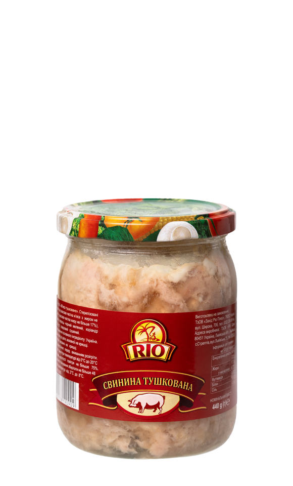 Тунець у власному соці 170г Місткість: 170 г Кількість в упаковці: 48 Термін придатності: 5 років Штрих код: 4820113380402 Свинина тушкована Місткість: 440 г Кількість в упаковці: 8 Термін придатності: 36 місяців Штрих код: 4820178190909 Консерви Тунець у власному соці 170г 170 г Свинина тушкована 440 г